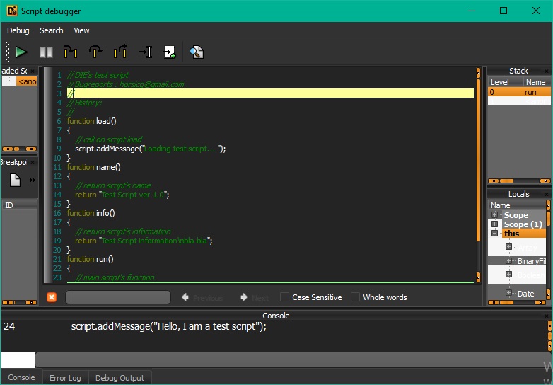 Detect It Easy, imza tamamen açık mimariye sahiptir. Zaten var olanları algılayan veya değiştiren kendi algoritmalarını kolayca ekleyebilirsiniz. Bu, komut dosyaları kullanarak başarılır. Komut dosyası dili JavaScript'e çok benzer ve programlamanın temellerini bilen herhangi bir kişi, nasıl çalıştığını kolayca anlayacaktır. Muhtemelen, biri komut dosyalarının çok yavaş çalışıp çalışmadığına karar verebilir. Gerçekten de, komut dosyaları derlenmiş koddan daha yavaş çalışıyor ancak Script Engine'in iyi optimizasyonu sayesinde bu herhangi bir rahatsızlığa neden olmuyor. Açık mimari olasılıkları bu sınırlamaları telafi etmektedir.